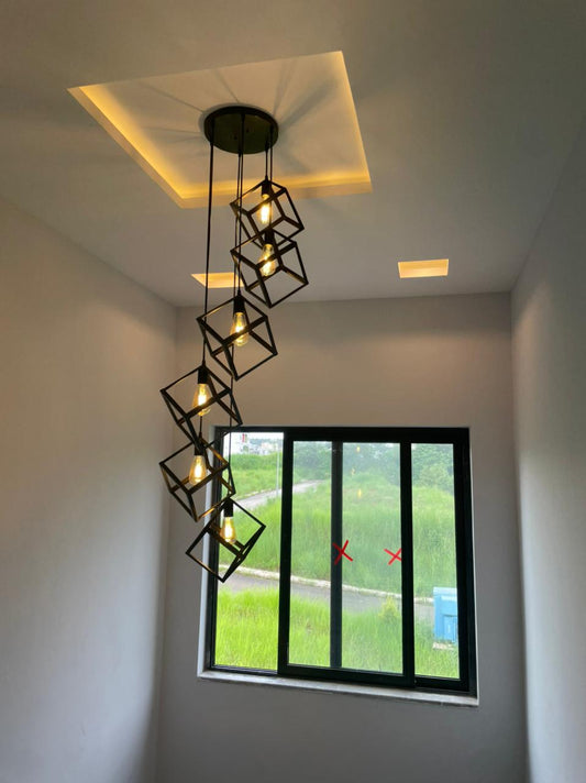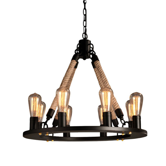 Rustic Industrial Hemp Rope Chandelier with Iron Frame
