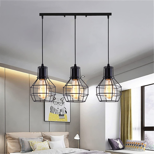 3in1 Nest wire cage Hanging Lamp in Rectangular Base